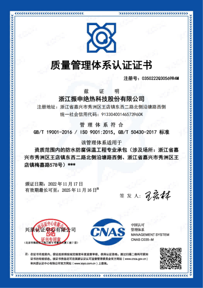 通過層層把關(guān),嚴(yán)格控制了產(chǎn)品質(zhì)量,取得了良好的品質(zhì)。浙江振申的所有產(chǎn)品質(zhì)量經(jīng)抽檢測試均達(dá)到國家規(guī)定的技術(shù)要求和世界工業(yè)發(fā)達(dá)國家保冷結(jié)構(gòu)冷耗水平。是管理規(guī)范化、質(zhì)量 標(biāo)準(zhǔn)化、產(chǎn)品系列化、市場誠信化,集產(chǎn)品科研開發(fā)、制造加工、安裝施工于一體的資深信譽(yù)企業(yè);企業(yè)被評為重合同守信用的誠信企業(yè);建設(shè)單位規(guī)范施工的放心企業(yè)。、